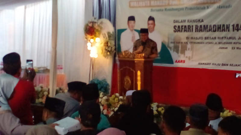 MANADO , BAS – Program Safari Ramadan Pemerintah Kota Manado, kali ini bersama – sama Jemaah Masjid Besar Miftahul Jannah Kelurahan Titiwungen Utara Kecamatan Sario. Kegiatan ini dihadiri Walikota Andrei Angouw dan Wakil Walikota Richard Sualang.