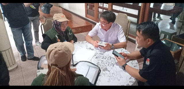 MANADO , BAS – Petugas Pemutakhiran Data Pemilih (Pantarlih) mengunjungi kediaman Wali Kota Manado Andrei Angouw di lingkungan dua Jalan Sarapung Kelurahan Lawangirung Kecamatan Wenang Kota Manado, Rabu (10/0724) melakukan pencocokan dan penelitian (Coklit) terhadap data keluarga Walikota Manado. Kegiatan ini turut didampingi Ketua KPU Manado Ferley Kaparang dan Ketua Bawaslu Brilian Maengko.