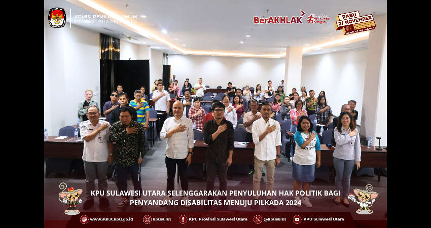 MANADO , BAS – Untuk menselaraskan pemahaman produk hukum semua Stakeholder dalam pelaksanaan Pilkada tahun 2024, KPU Sulut menggelar Penyuluhan Produk Hukum Pemilihan Serentak Tahun 2024 Kepada Stakeholder Tingkat Provinsi.