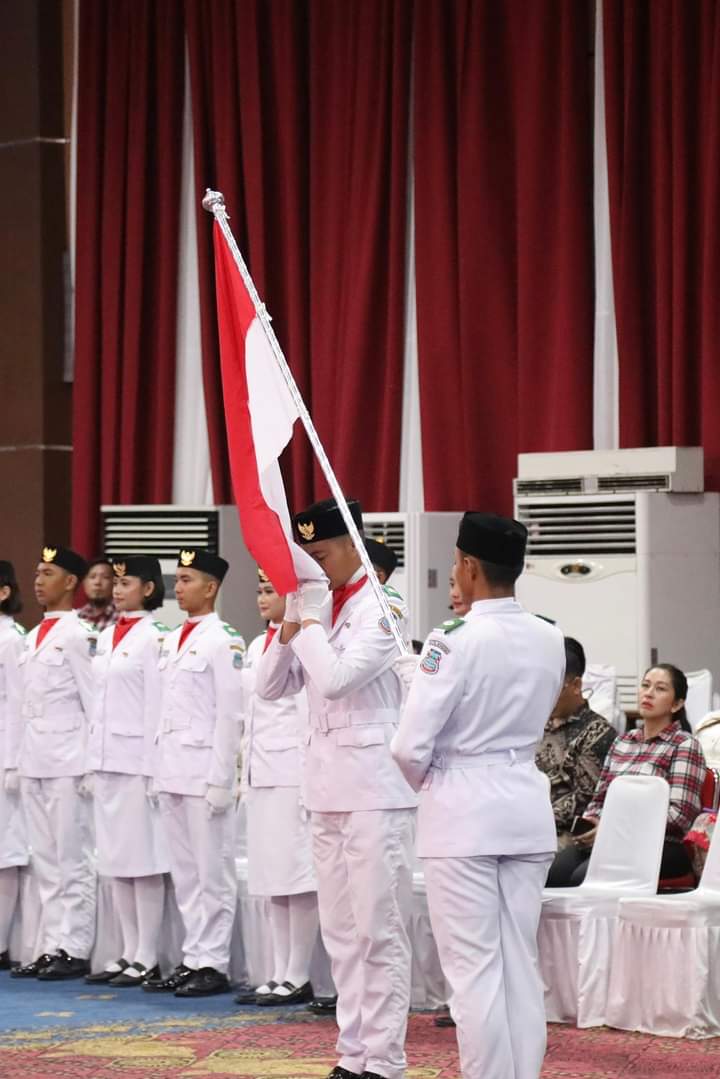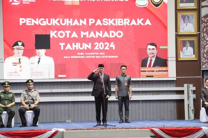 MANADO, BAS -Wali Kota Manado Andrei Angouw mengukuhkan Paskibraka Kota Manado Tahun 2024 di Aula Serbaguna Kantor Wali Kota, rabu (14/08/24).