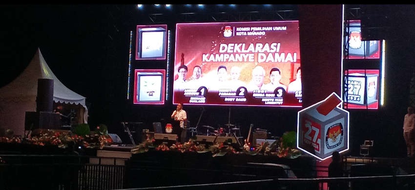 Setelah itu digelar Deklarasi Kampanye Damai yang melibatkan keempat Paslon dan pendukung masing-masing. Kegiatan ini dihelat di lokasi Pohon Kasih kawasan Mega Mas Manado, senin (23/09%24).