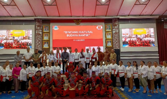 MANADO ,BAS – Masyarakat adat Bantik merupakan salah satu sub suku Minahasa yang mendiami Kota Manado, mengadakan kegiatan Festival Seni Budaya Bantik dan Peringatan ke 76 Tahun Gugurnya Pahlawan Nasional Robert Wolter Mongisidi. Kegiatan ini dilaksanakan di Ruang Serba Guna Pemerintah Kota Manado, jumat (11/07/25).