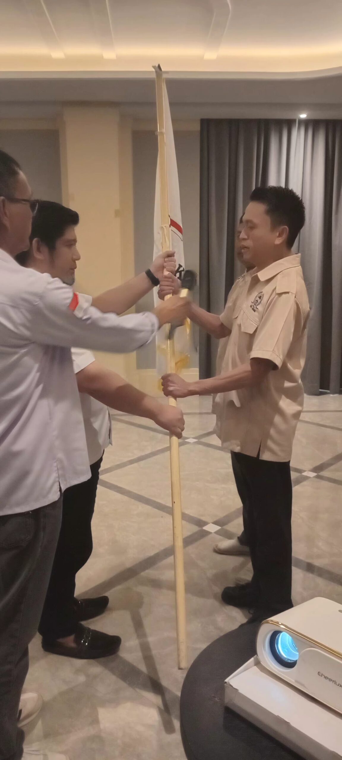 Dalam pelantikan ini, Pengurus DPD LPM Provinsi Sulut menyerahkan bendera pataka LPM kepada ketua DPD LPM Manado Rocky Korah, sebagai tanda kepengurusannya telah secara sah dan siap bekerja menjalankan program organisasi.