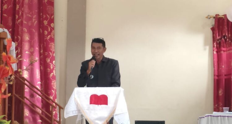 MANADO, BAS – Camat Bunaken Kepulauan Imanuel Mandak menghadiri ibadah syukur HUT